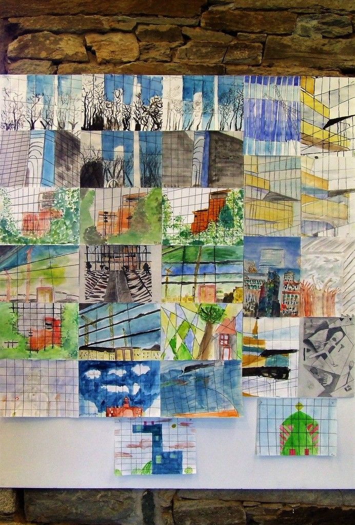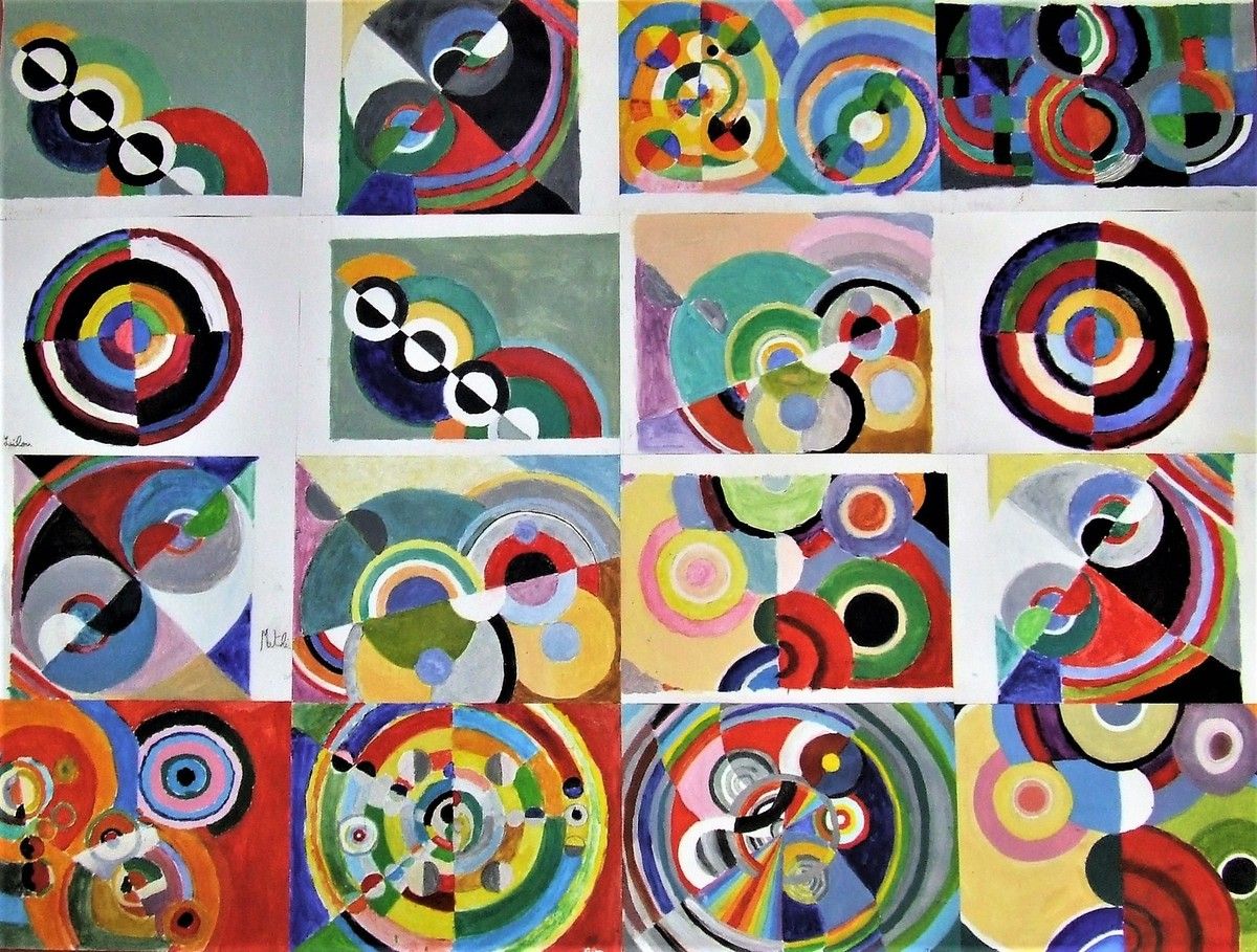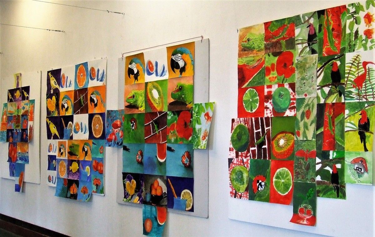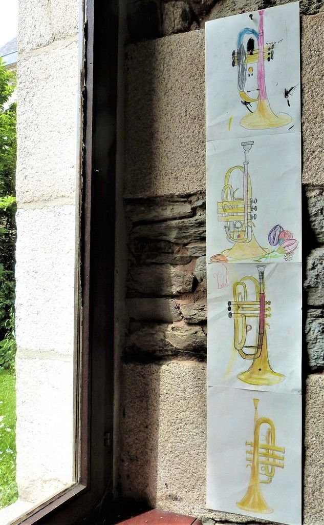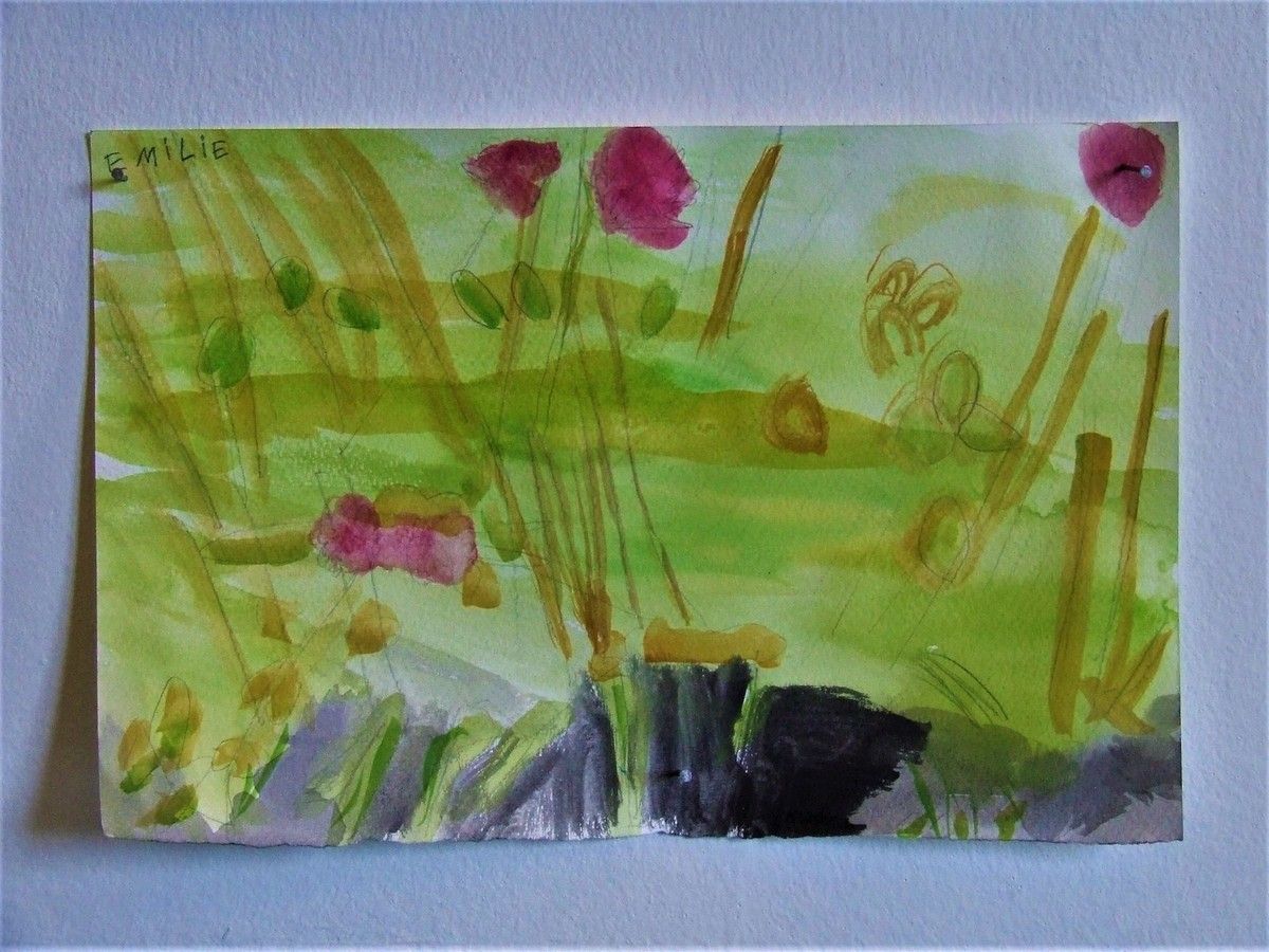 Je délimitais les contours au pinceau, les enfants peignaient l'espace de leur choix, d'une des couleurs proposées, par groupe de 2 à 4 enfants toutes les demies heures, sur 3 jours d'intervention.