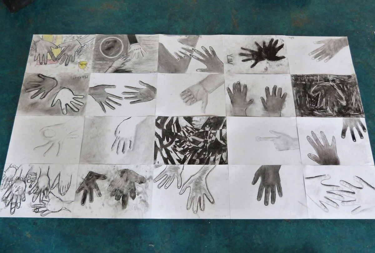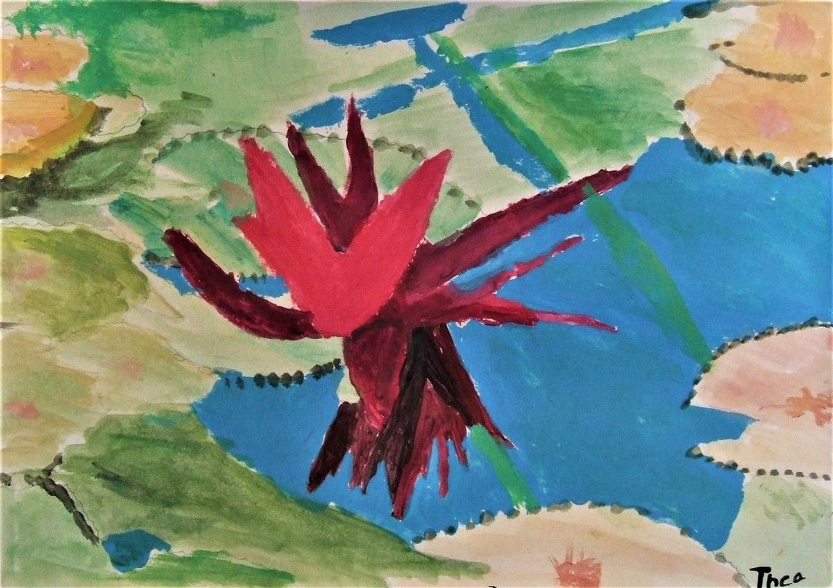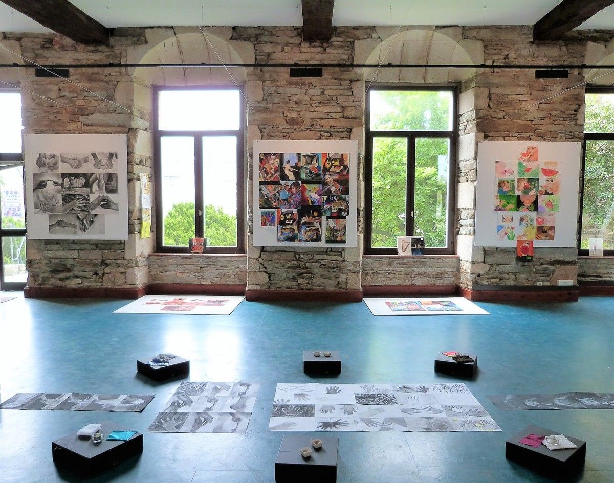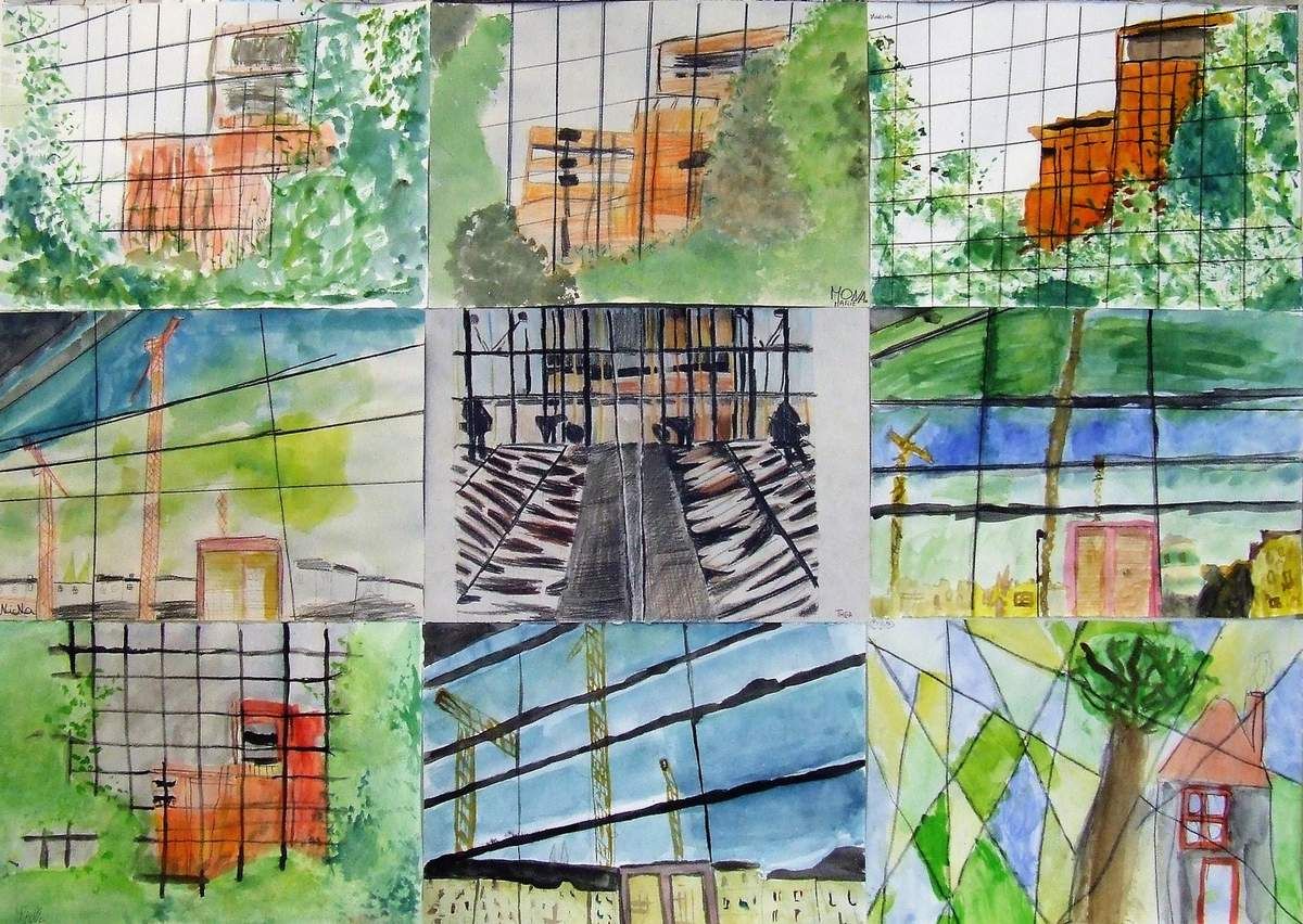 Je délimitais les contours au pinceau, les enfants peignaient l'espace de leur choix, d'une des couleurs proposées, par groupe de 2 à 4 enfants toutes les demies heures, sur 3 jours d'intervention.
