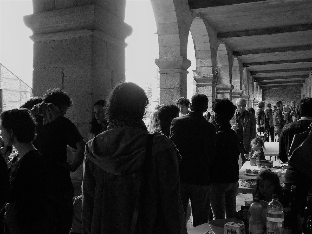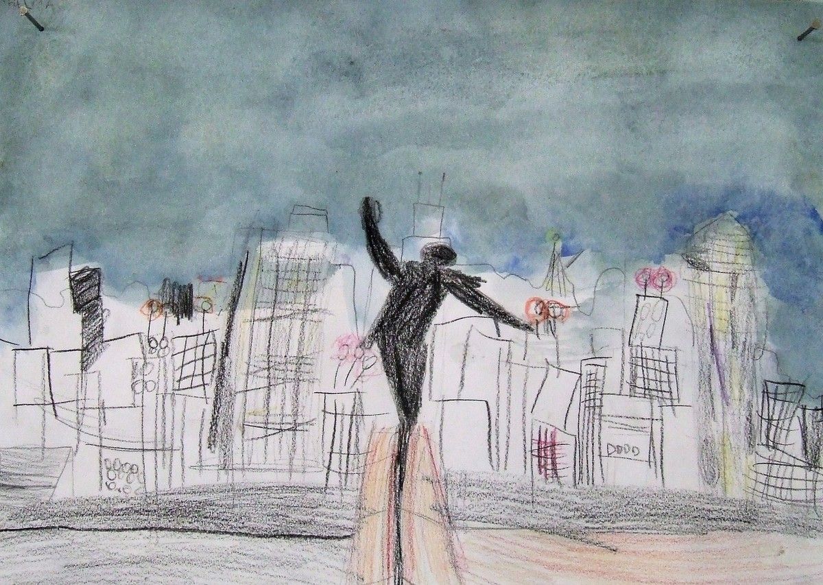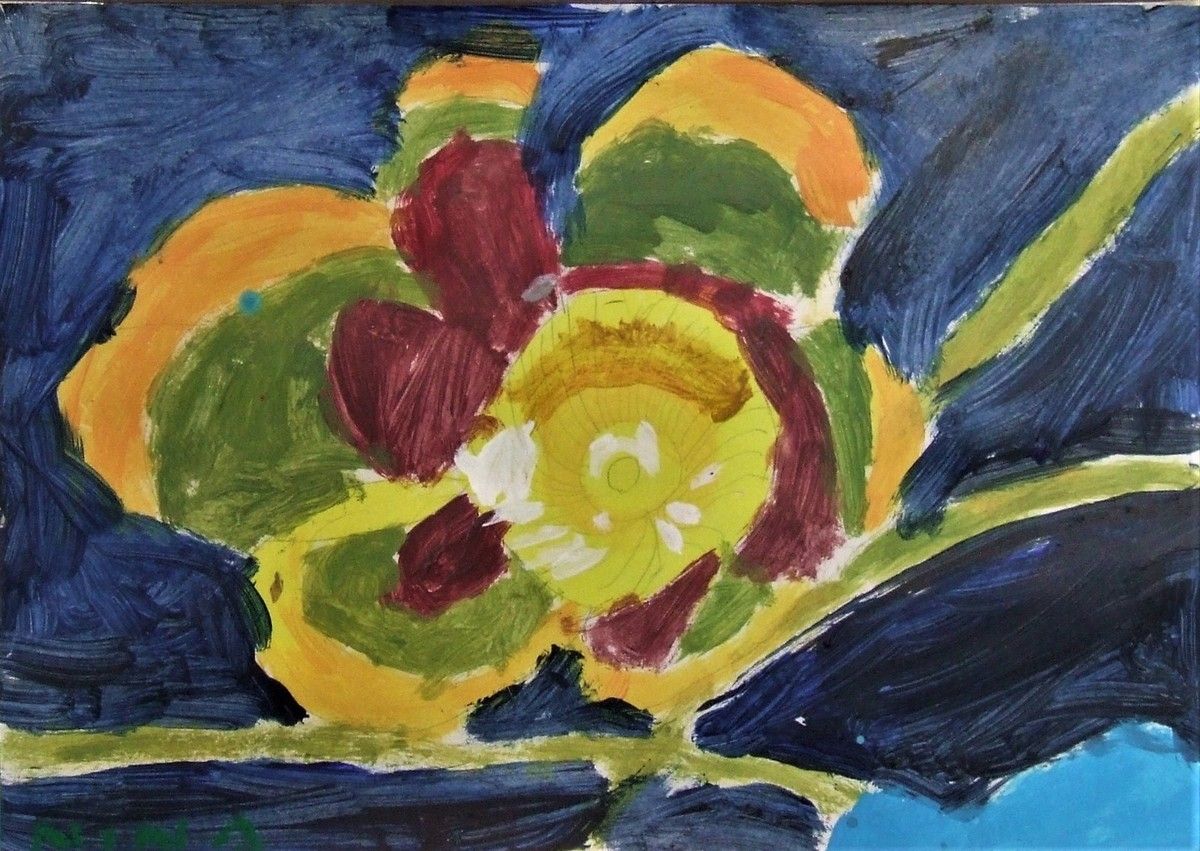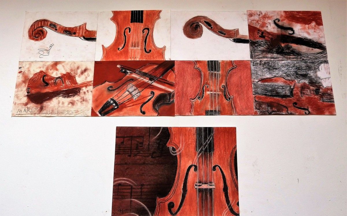Je délimitais les contours au pinceau, les enfants peignaient l'espace de leur choix, d'une des couleurs proposées, par groupe de 2 à 4 enfants toutes les demies heures, sur 3 jours d'intervention.